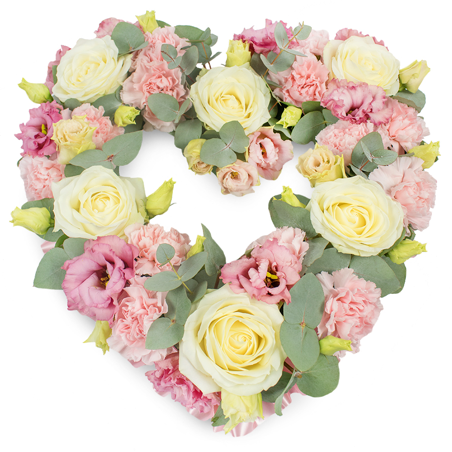 Show your heartfelt respect with this elegantly designed bouquet, perfect for commemorating cherished memories. The arrangement features crisp white roses, tender pink carnations, and soft pink lisianthus, beautifully accented with fresh eucalyptus leaves. Designed by experienced florists, every flower is carefully chosen to ensure maximum freshness and visual impact.
